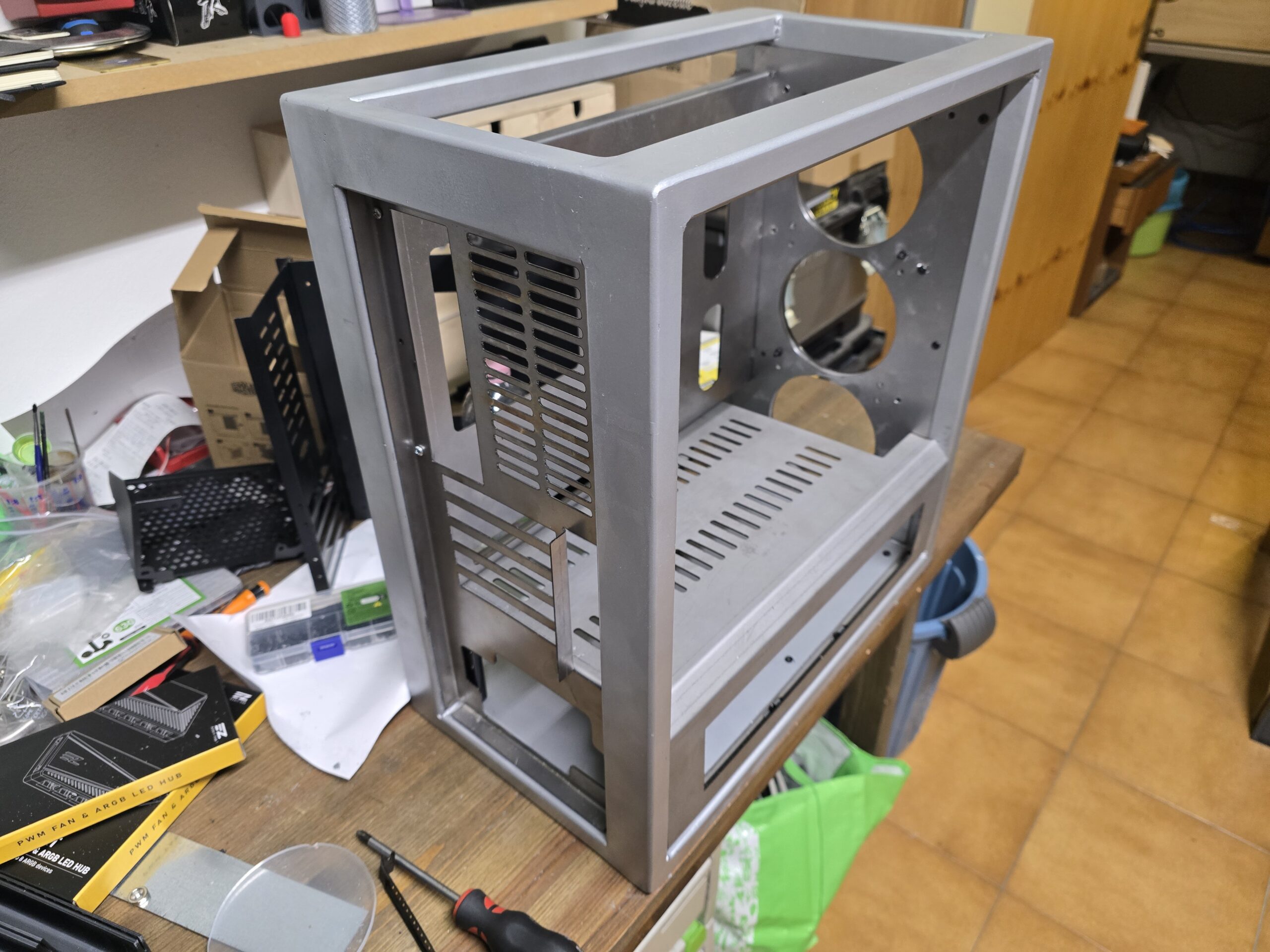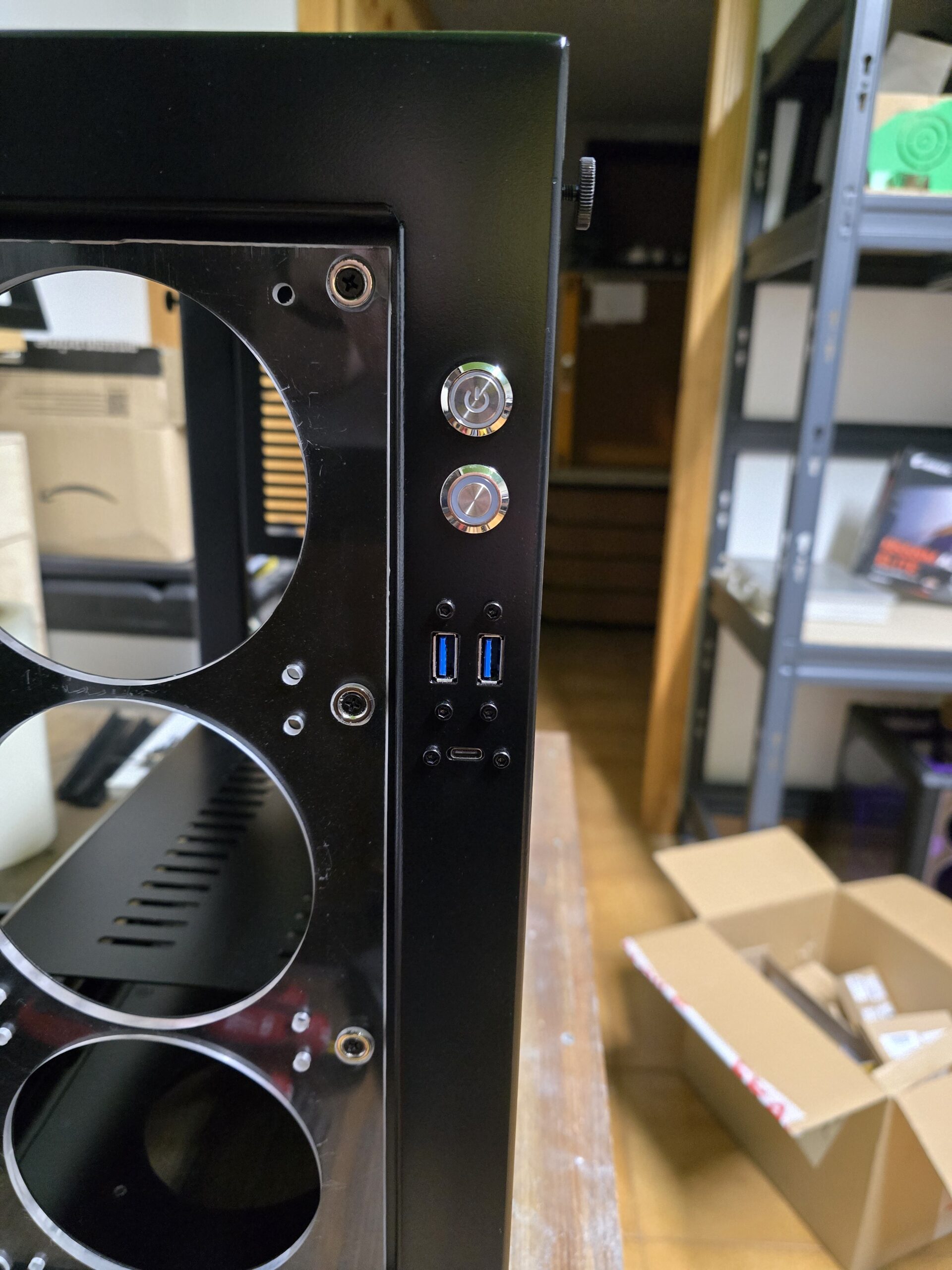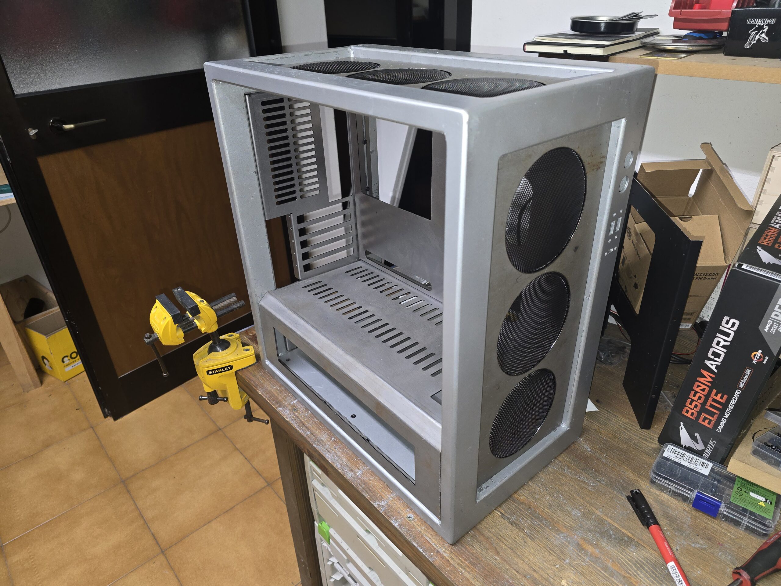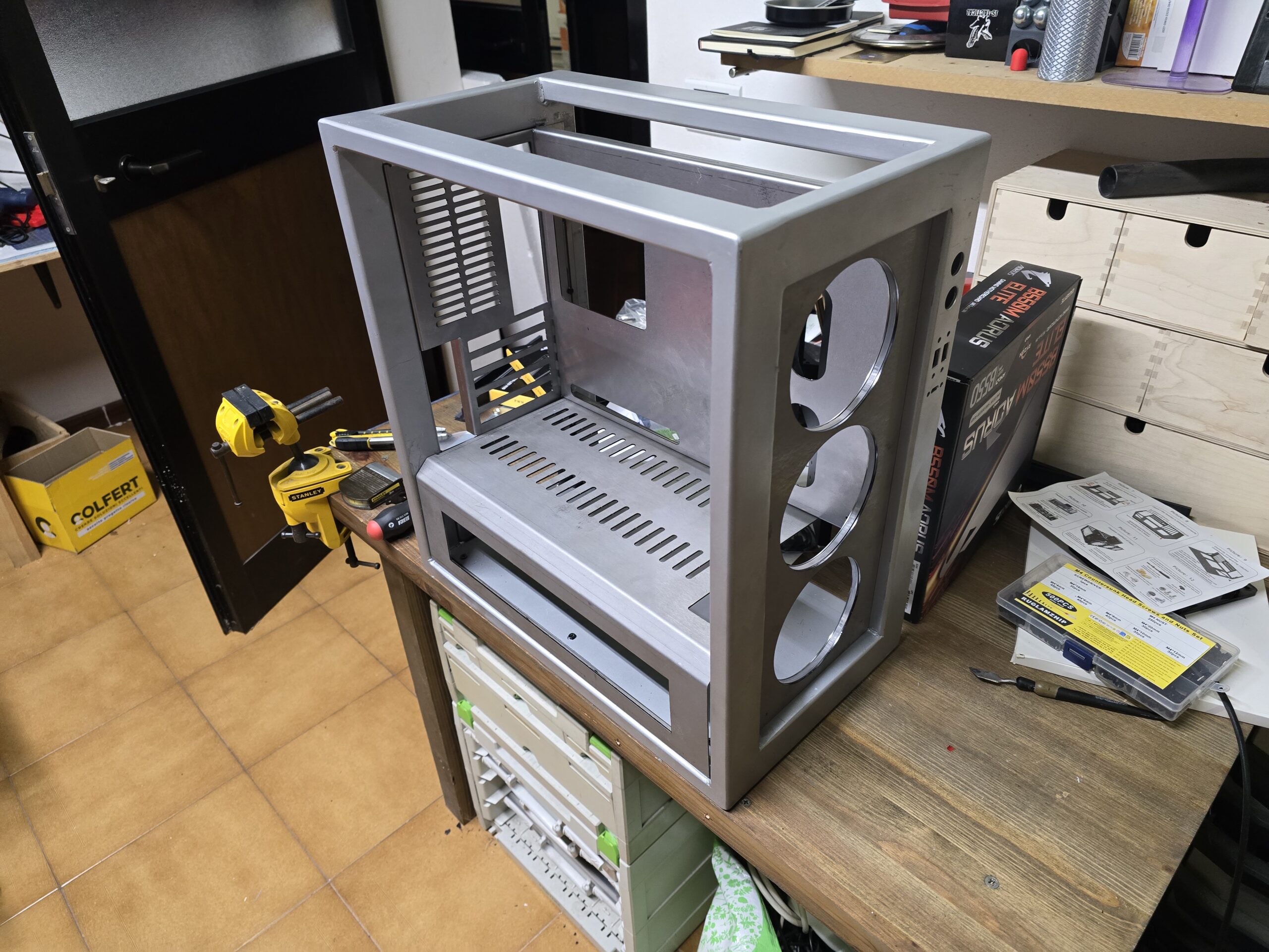 Case interamente costruito su misura per ottenere il massimo con gli spazi interni e l’ingombro richiesti, questa build soddisfa chi cerca il massimo a livello costruttivo ma anche chi cerca un design accattivante. Telaio monoblocco e pannelli interni ed esterni realizzati in acciaio per eliminare ogni vibrazione, non è presente nemmeno un rivetto nell’intera costruzione ed ogni pannello è facilmente removibile con un semplice cacciavite. Il pannello frontale e quello superiore sono magnetici e permettono di cambiare stile senza nemmeno un utensile, sostituendoli con altri in acciaio verniciati di altri colori, in legno di diverse essenze oppure di policarbonato con lavorazione o scritte a piacimento. L’illuminazione è integrata in tutto il case grazie a un sistema custom realizzato “ad-hoc” e infine è possibile mantenere lo stesso telaio, con gli stessi ingombri montando hardware mAtx o Atx tramite la semplice sostituzione di 3 pannelli, con sole 8 viti !!! Vi invitiamo a guardare tutte le foto per capire le enormi possibilità di una build come questa.